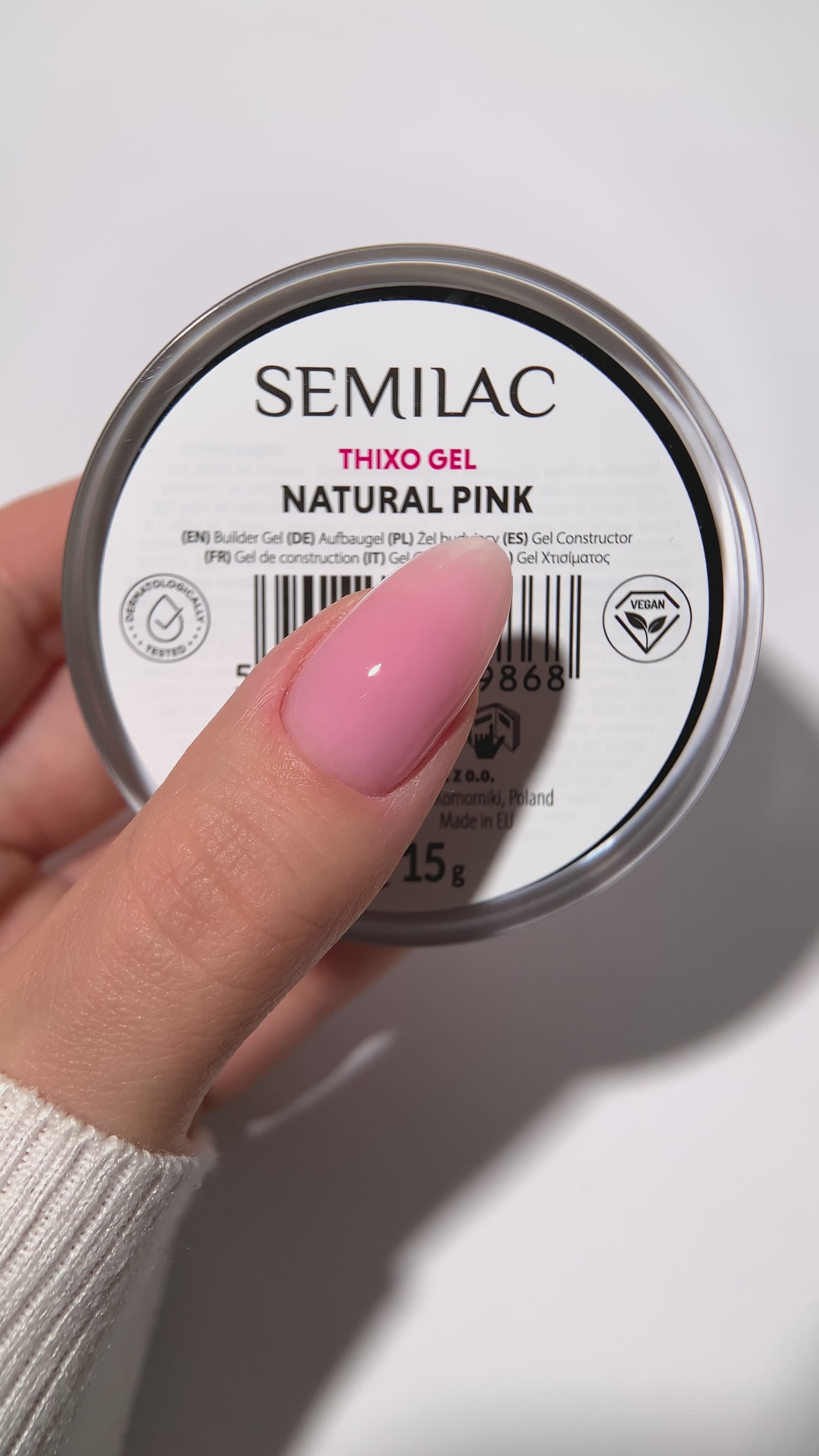 - Apply Semilac Builder Gel Thixo Gel Natural Pink 15g onto a properly prepared nail plate. We recommend using a Semilac primer.